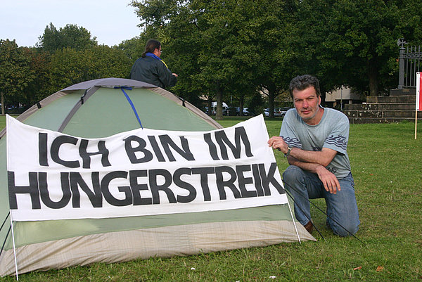 Hannover/Frankfurt. Weil er sich in zwei Gerichtsverfahren um sein Umgangsrecht nicht gegen die Verweigerungshaltung der Mutter seines Sohnes durchsetzen konnte, hatte der Hannoveraner sein Zelt an der Waterloo-Säule aufgeschlagen und am 12.September einen Hungerstreik begonnen. Damit wollte der Vater auf seine Notlage und auch auf bemerkenswerte Umstände und Bedingungen eines Urteils des Amtsgerichts Hannover aufmerksam machen. Denn darin verfügt wurde eine strafbedrohte ‚Kontaktsperre’ des Vaters hinsichtlich seines 13jährigen Sohnes bis 2013. Der ‚Kommunale Sozialdienst’ der Landeshauptstadt Hannover beteiligte sich im Prozess auf Seiten der Mutter.